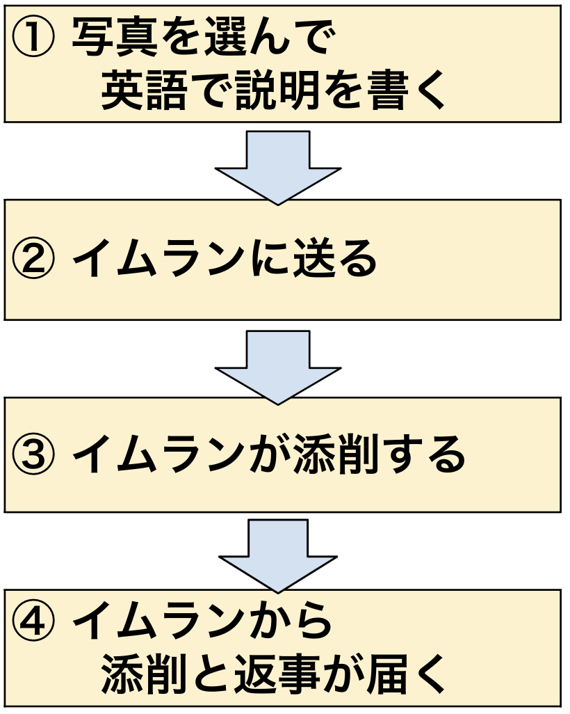 もちろん、1人で振り返るのも良いのですが、あなたがその思い出を、言葉を選びながら英語で書き、それを僕(イムラン)が読み、添削する。そしてイムランから返事が送られてくる。そこからまた新しい視点が見つかるかもしれません。