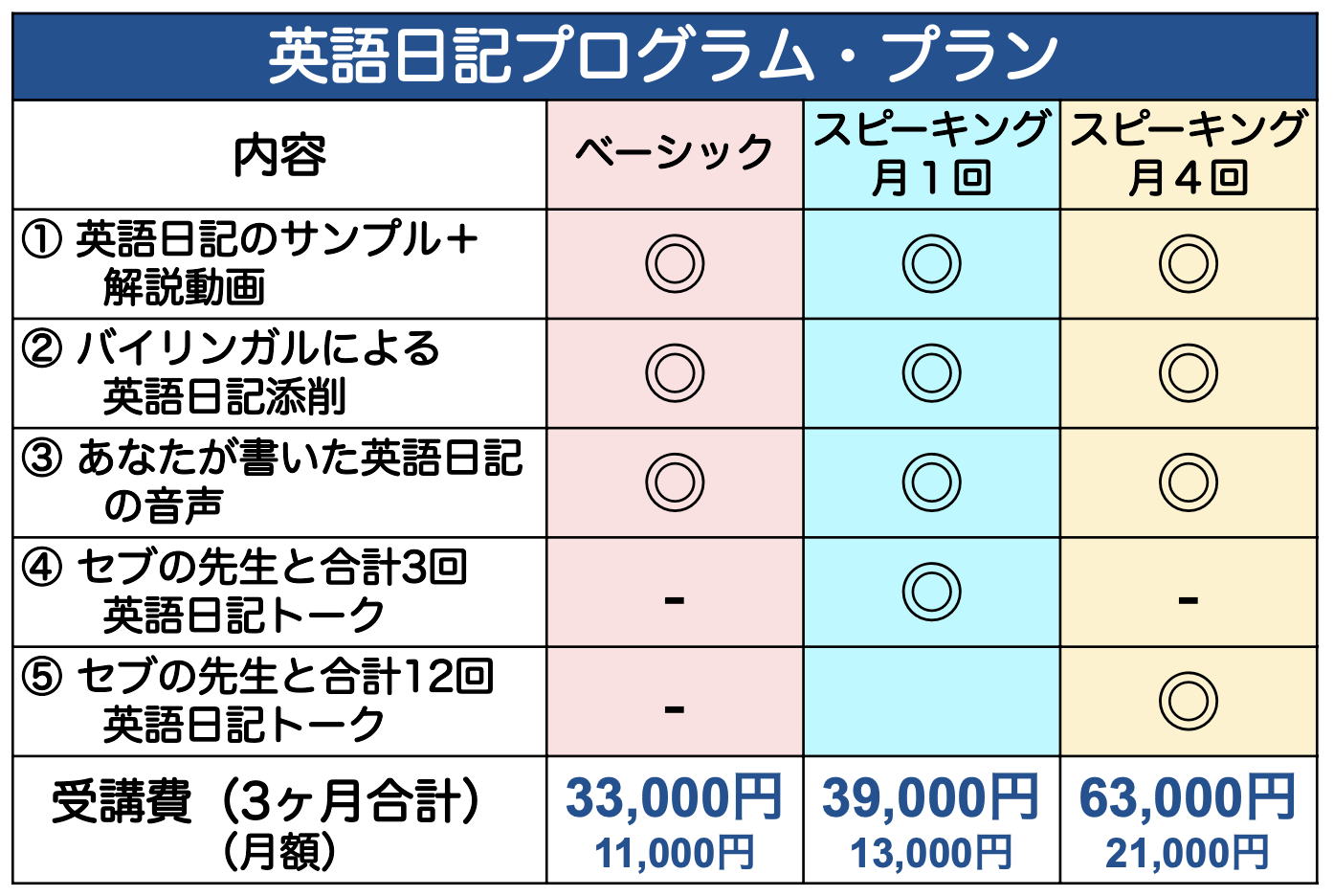 また、「スピーキング・プラン」を選ぶと、月に1回4つの英語日記を外国人講師相手に話していただきます。月1回、誰かに話さないといけないと思うと、怠けることができないので、さらに練習に励みますよね。追い込まれないとやらない方は、「スピーキング・プラン」をお選びください。